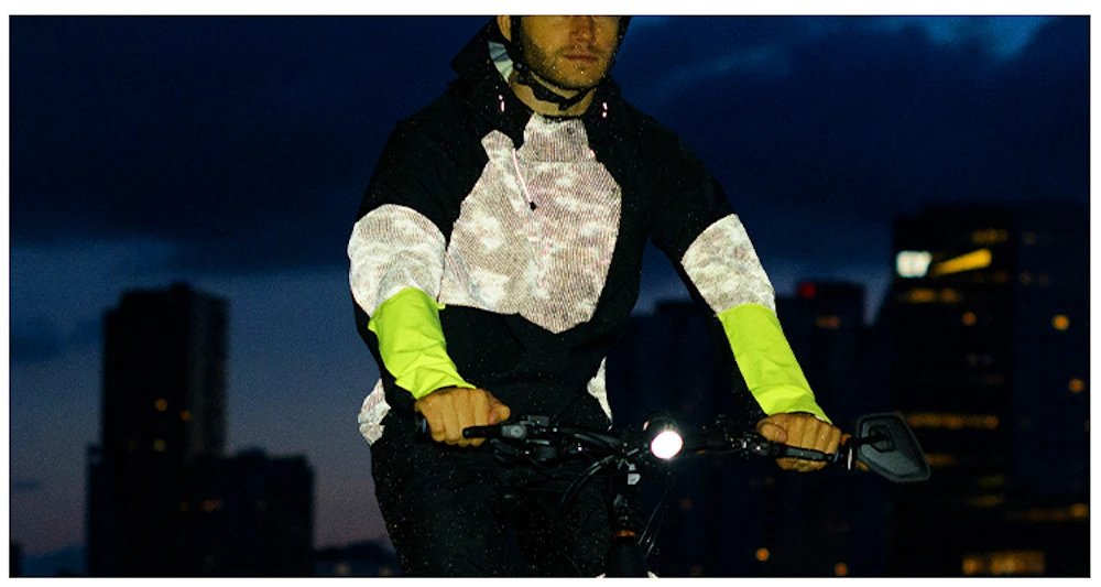 Die Tech Rain Jacke ist die ultimative Bekleidung für Hochgeschwindigkeits Pendler, die eine hochwertige Ausrüstung verlangen, um bei jedem Wetter fahren zu können. Sein zeitgemäßes Design mit einer asymmetrischen Magnetklappe fügt sich perfekt in die neueste Technologie der Imprägnierung ein. Die Ärmel wurden verlängert, um Ihre Hände zu schützen, und mit gelben Warnschutz- und reflektierenden Elementen werden Sie sowohl an trüben Tagen als auch im Dunkeln sicher auffallen. Diese stylische Jacke ist hochgradig atmungsaktiv, akut designt und figurbetont und funktioniert auch abseits des Fahrrads in jeder Umgebung sehr gut.
