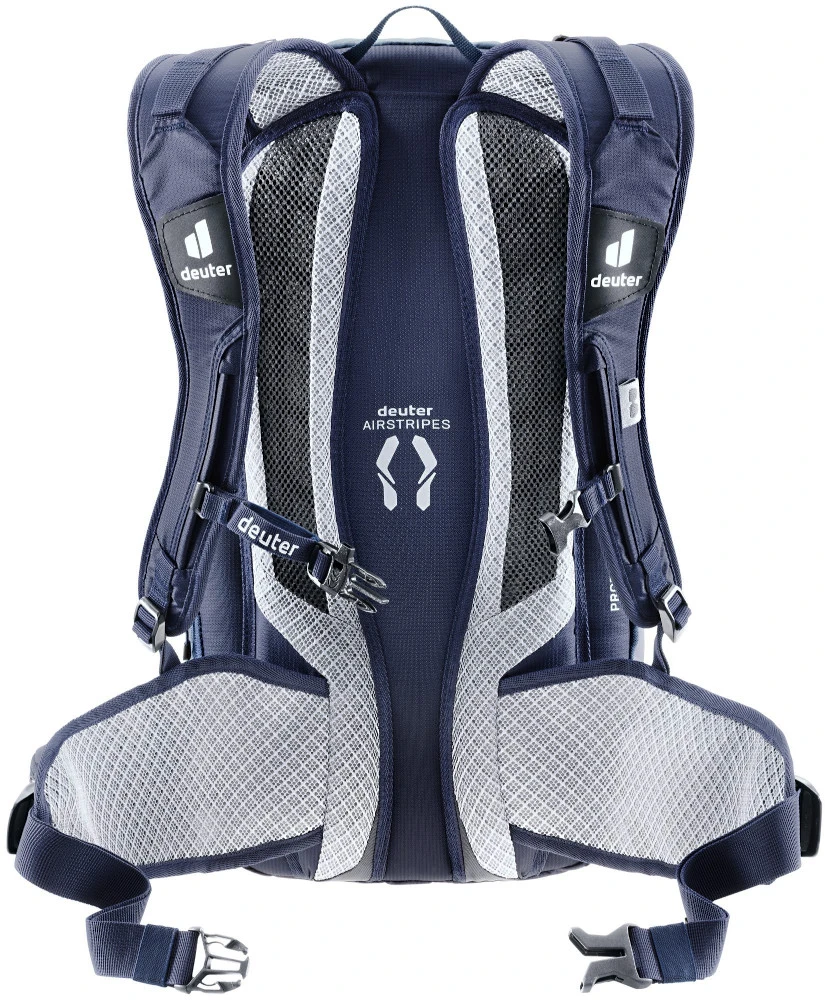 Maximalen Schutz bietet der extra leichte und herausnehmbare Rücken-protektor vor Verletzungen. Nach einem ernstzunehmenden Sturz ersetzt Deuter einen deformierten Protektor kostenlos (Free Crash Replacement, zwei Jahre). Der Protektor-Rucksack sorgt zusätzlich in Kombination mit dem Airstripes-System für eine angenehme Belüftung am Rücken.
