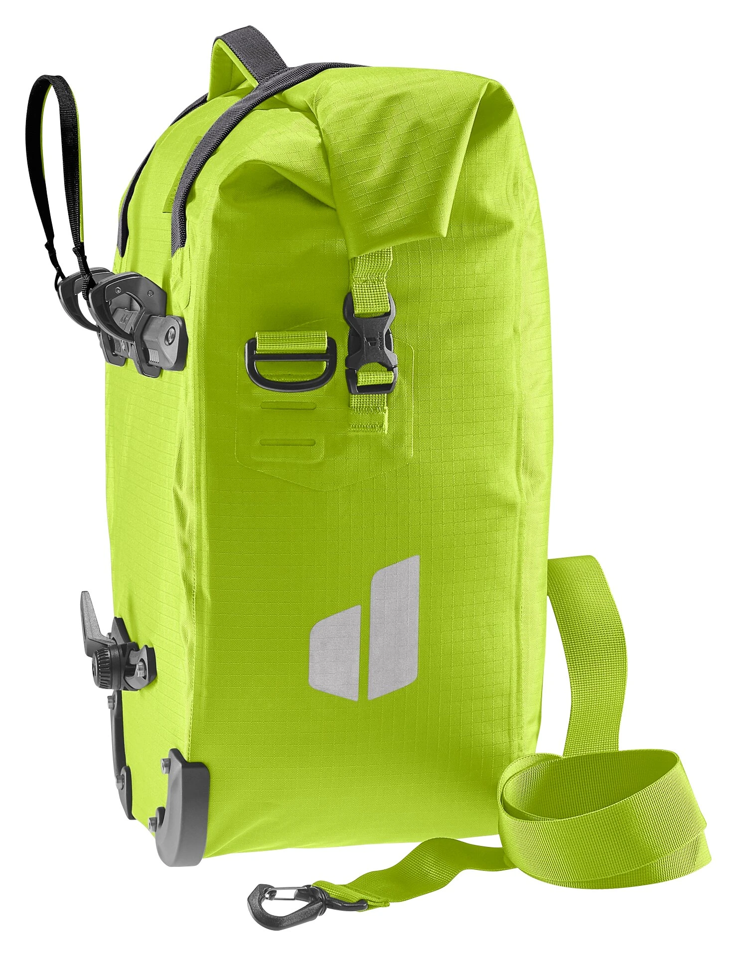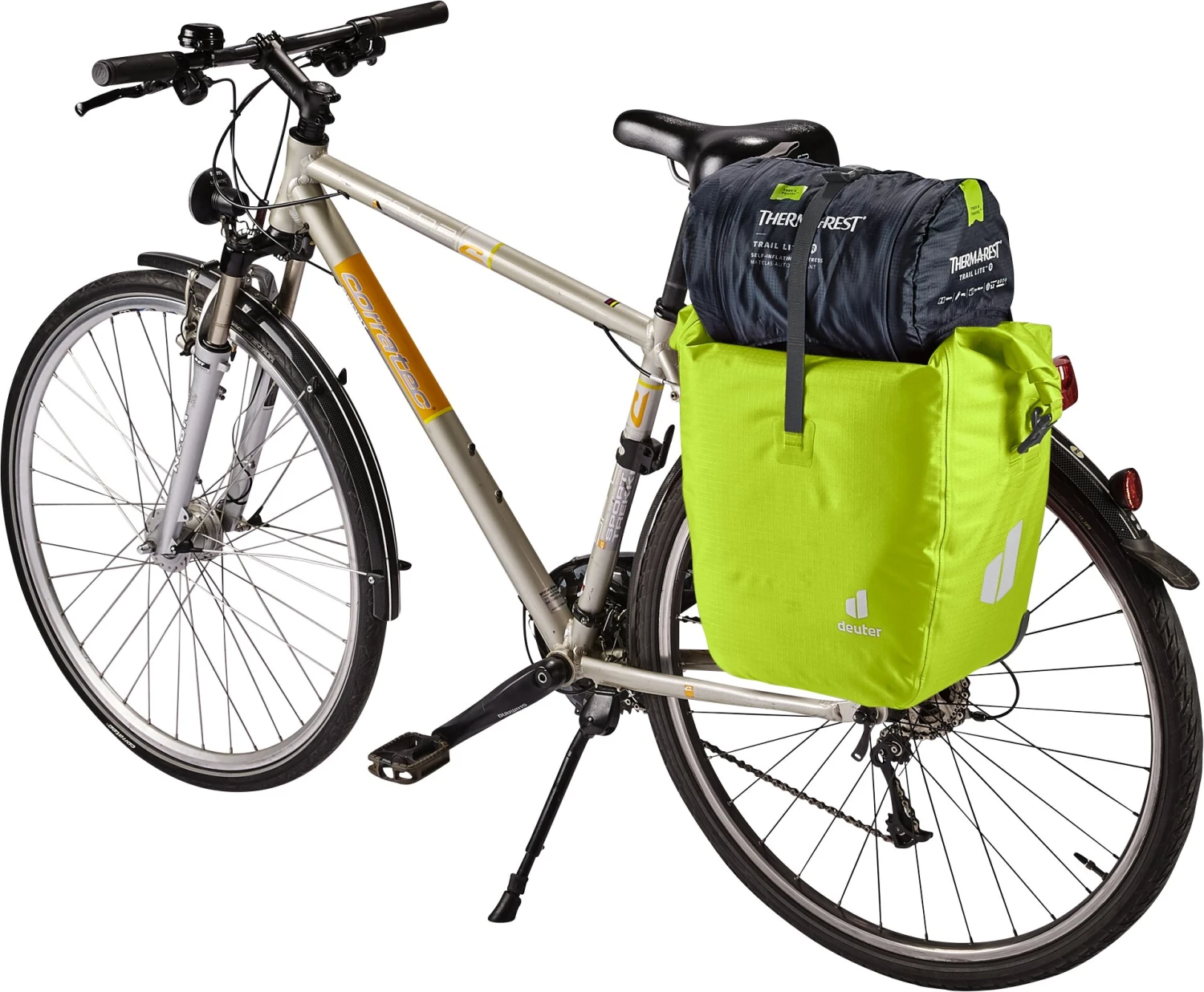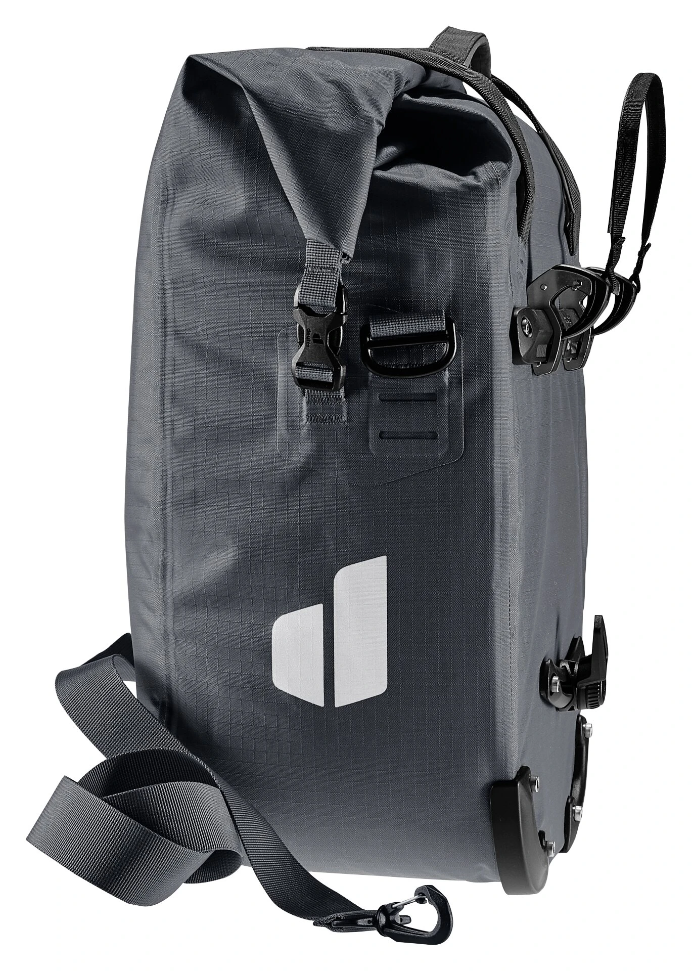 Die wasserdichte Fahrradtasche bewahrt Reisegepäck sicher vor dem Eindringen der Nässe durch Regen oder Spritzwasser. Dank des 2-Wege-Rolltopverschlusses kann das Volumen um zusätzliche 5 Liter erweitert werden. Die neu entwickelte BagFix-Halterung sorgt für maximale Bewegungsfreiheit, da die Last zu 100% auf dem Hinterrad und nicht auf dem Rücken des Bikers liegt. Die Tasche kann mit nur einem Handgriff vom Gepäckträger abgenommen und als Schultertasche verwendet werden. So sind ihrem Einsatz kaum Grenzen gesetzt.
