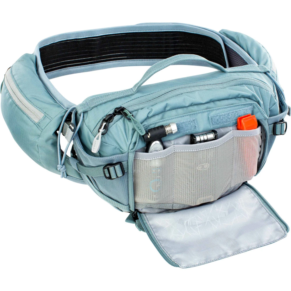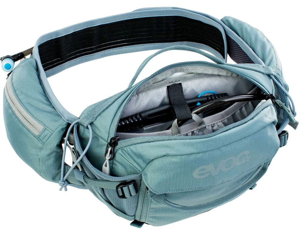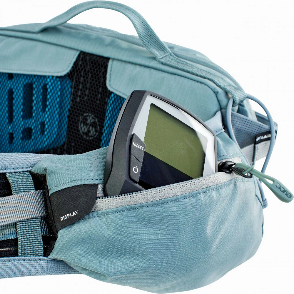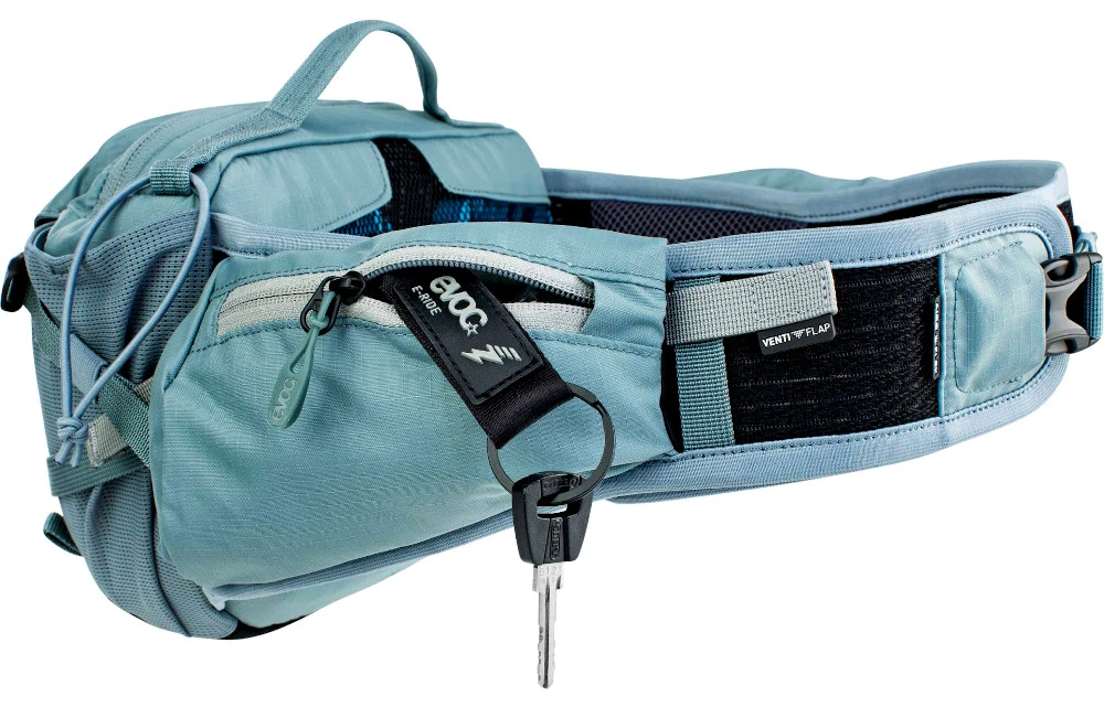 Mit der belüfteten Hüfttragetasche bleibt der Rücken frei und das wichtigste Zubehör kommt trotzdem mit auf E-Mountainbike-Touren. Neben dem Ladegerät ist genug Platz für Werkzeug und ausreichend Flüssigkeit.