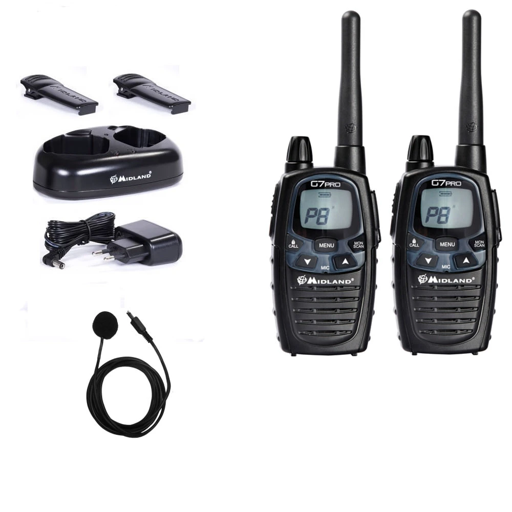 Dieses neue Funkgerät mit seinem auffälligen Design und robusten mechanischen Rahmen ist die ideale Lösung sowohl für Profis, die in Kontakt mit Kollegen bleiben müssen (Baustellen, Gebäude, Hotels, Messen, Shows), als auch für Freizeit-Anwender, um einfach mit Freunden und Familie Kontakt zu halten. Extrem robust und einfach zu bedienen, ist das G7 Pro ideal für den Einsatz bei allen Aktivitäten. Es arbeitet sowohl auf PMR446 und dem LPD-Band. Das Midland G7 Pro beinhaltet alle Funktionen, die Sie von einem neuen und modernen Funkgerät erwarten und gewährleistet maximale Effizienz. Die verbesserte Tonqualität-und Subton-Squelch-Verfahren sind die wichtigsten Merkmale dieses neuen Funkgerätes. Des Weiteren beinhaltet dieses Gerät eine beleuchtete LCD-Anzeige, einen Vibrationsalarm für den Einsatz in lauter Umgebung und eine automatische Energiesparfunktion, die den Batterieverbrauch um bis zu 50% reduziert. Alle Features dieses hervorragenden Funkgeräts erreichen Sie bequem über die zentral angebrachten Bedienelemente.