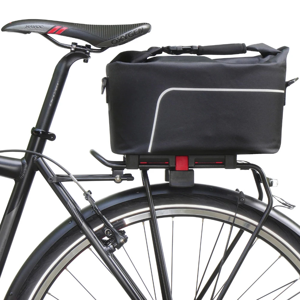 Taschen, Boxen oder Körbe lassen sich mit dem UniKlip Halter auf den unterschiedlichsten Gepäckträgertypen nutzen. Die Montage ist kinderleicht: Einmal auf Trägerbreite einstellen, Zubehör aufsetzen, Clip umlegen, fest!