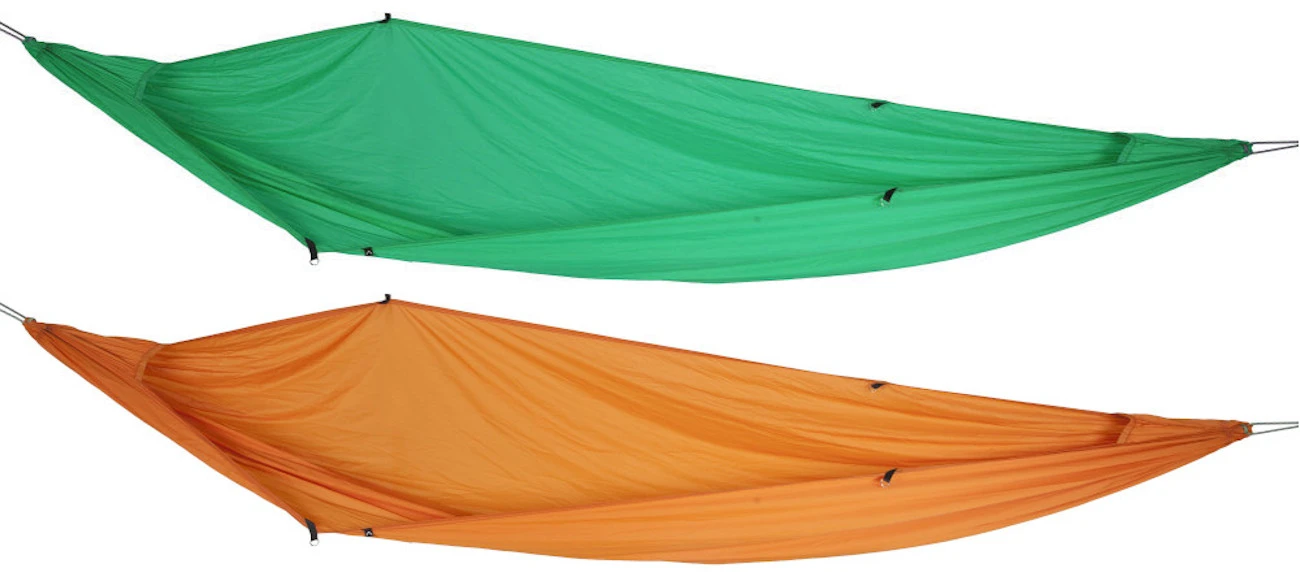 Das komplette Set besteht aus Hängematte, stabilen Alu-Karabinern, Zurrgurten und einer wasserdichten Kompressionstasche. So nimmt sie sehr wenig Platz ein und ist mit 700 Gramm so leicht, dass Sie es im Gepäck nicht spüren werden. Das Nylongewebe ist hoch atmungsaktiv und transportiert Feuchtigkeit effizient nach außen, wodurch die Hängematte höchsten Komfort bietet und nach dem Einsatz sehr schnell wieder trocken ist.