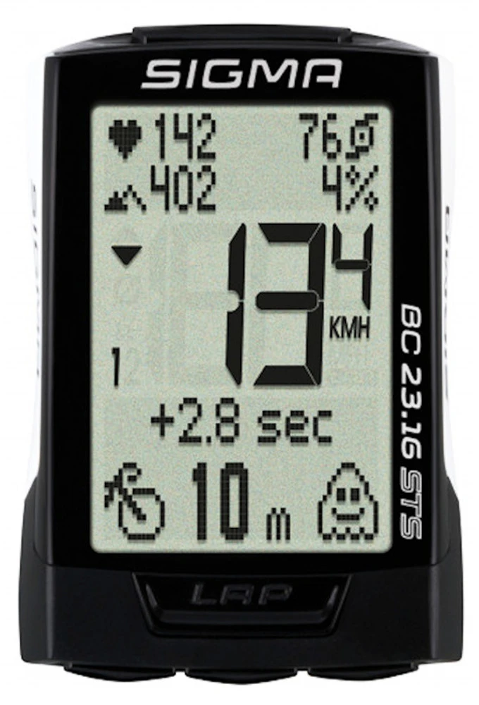 Der BC 23.16 STS ist das sportlichste Modell der Topline. Neben allen wichtigen Fahrrad-, Höhen- und Herzfrequenz-Funktionen, zeigt er auch die Trittfrequenz an. Alle Sender sind im Lieferumfang enthalten. Absolutes Highlight ist die enorme Log-Kapazität von bis zu 500 Stunden. Aus den gespeicherten Logging Daten kann über das DATA CENTER ein Datensatz ausgewählt werden, das als virtueller Gegner für ein Ghost Race verwendet wird.