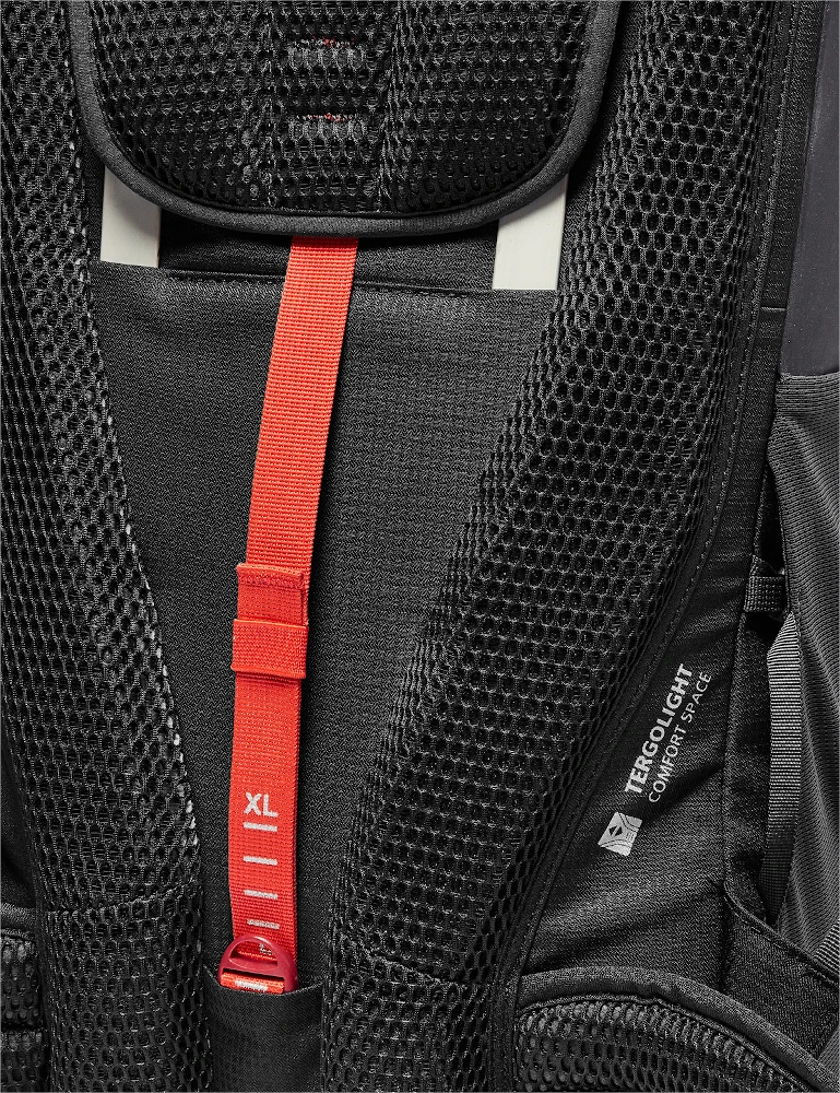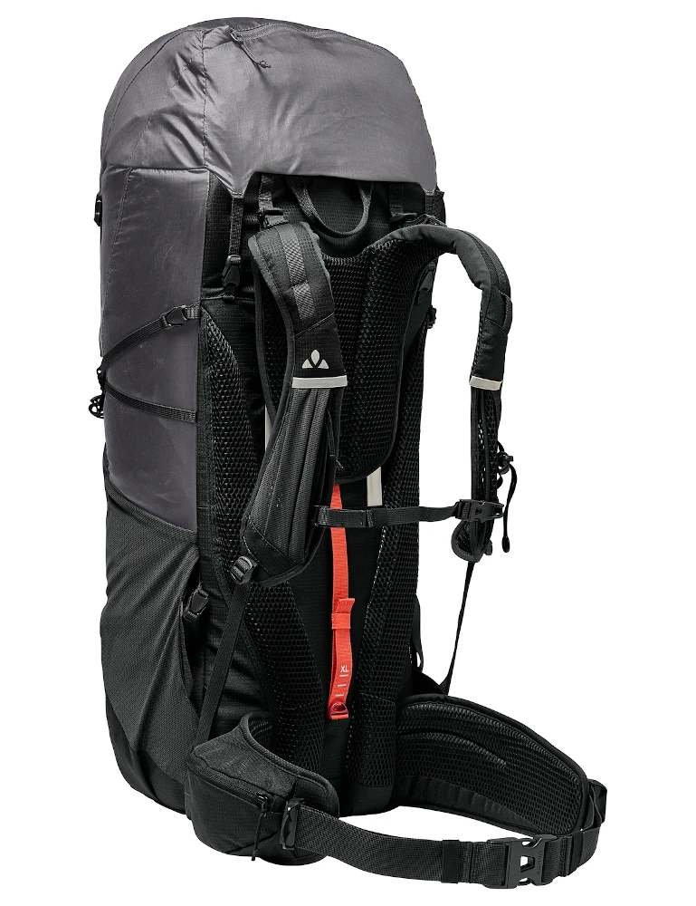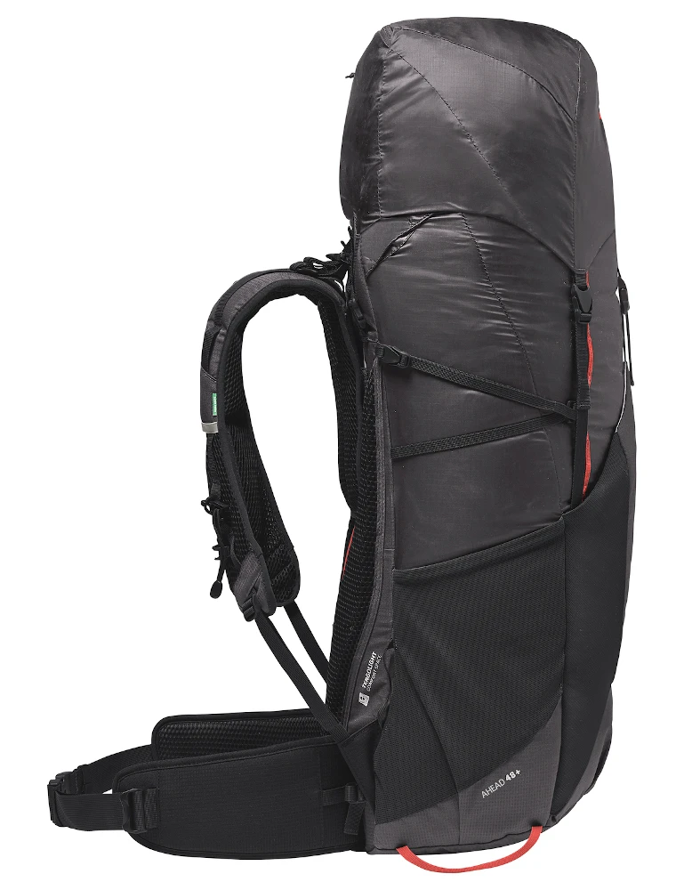 Wenn beim Trekking jedes Gramm zählt: Der Lightweight-Trekkingrucksack bietet hohen Tragekomfort bei niedrigem Gewicht – ideal für schnelle Wanderungen und zum Pilgern. Der ultraleichte Trekkingrucksack ist rückenfreundlich gepolstert: Die Aussparung am unteren Rücken mindert den Druck auf das Iliosakralgelenk und beugt Rückenschmerzen vor. Das Tergolight Comfort Space-Tragesystem verteilt die Last optimal. Rückenlänge sowie Lastenpositionierung sind individuell einstellbar. Die luftigen Ergoshape-Schultergurte des Ahead 48+ lassen dank ihrer speziellen Form genug Bewegungsfreiheit für die Arme bei steilen Aufstiegen. Energieriegel oder Handy sind in den Taschen an Schulterträgern und Hüftgurt griffbereit. Aus den elastischen Seitentaschen lassen sich Trinkflasche, Mütze usw. entnehmen, ohne den Trekkingrucksack abzusetzen. Trekkingstöcke können einfach beim Gehen befestigt werden. Feuchte Ausrüstung findet im geräumigen Frontfach Platz und trocknet dank Mesheinsätzen ab. Die variable Daisy Chain nimmt Helm und Steigeisen auf. Der Toplader hat ein extra Fach für die Trinkblase. Die Ersatzschnalle am oberen Kompressionsriemen ersetzt unterwegs eventuell defekte Schnallen. Der höhenverstellbare, abnehmbare Deckel erweitert das Volumen um weitere 8 Liter und lässt sich zudem separat als Hüfttasche tragen. Das Material des Ahead 48+ besteht aus einem Mix aus zu 100 % recyceltem Polyester sowie Polyamid mit einem biobasierten Anteil aus 62 % Rizinusöl – ein äußerst leichtes, reißfestes, nachhaltiges Material. Das VAUDE Green Shape-Label steht für ein umweltfreundliches, funktionelles Produkt aus bluesign® zertifizierten, nachhaltigen Materialien.