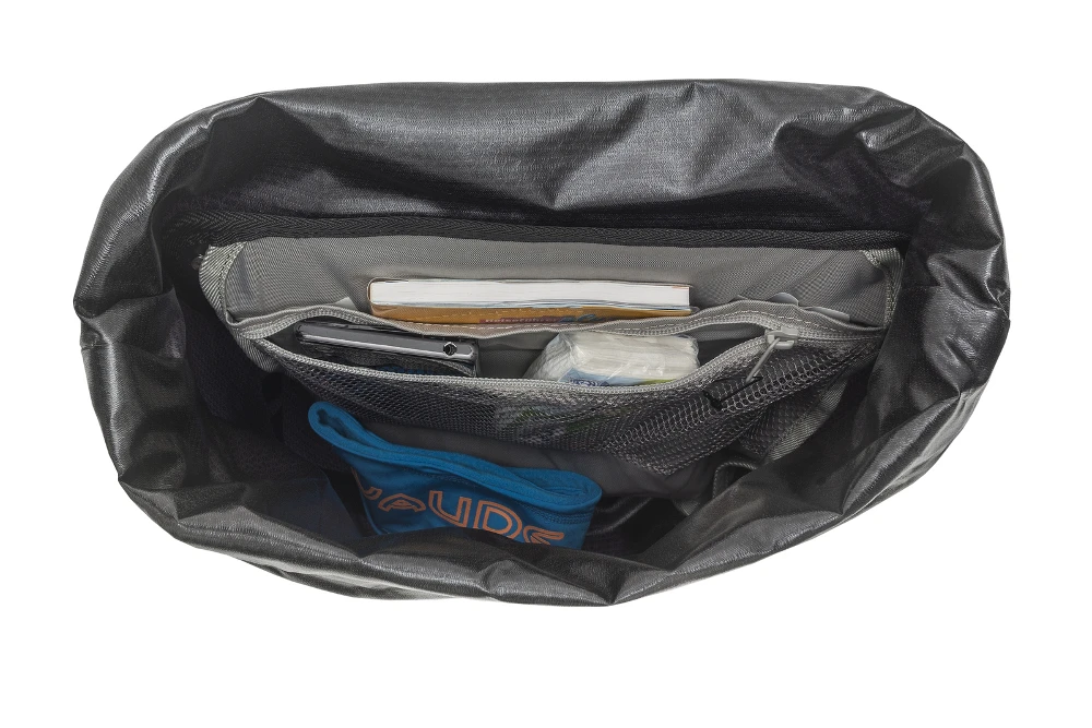 Die Aqua Front Light Vorderradtasche sorgt für Erleichterung – denn hier wurde auf überflüssigen Ballast verzichtet. Leidenschaftliche Radreisende kennen das: Da hat man beim Gepäck schon hunderte Gramm gespart – und dann heben die Radtaschen das Gewicht nochmal ordentlich an. Die Aqua Front Light besticht durch ihre durchdachte Materialkombination. Die 2D-verschweißte Plane ist dünner, aber nicht weniger robust als bei den schwereren Taschen aus der Aqua-Serie. Statt eines aufwändigen Komprimierungssystems kommt eine Kordelspinne zum Einsatz, hinter der sich zugleich Jacken, Shirts und andere Kleidungsstücke schnell und unproblematisch unterbringen lassen. Die Aqua Front Light ist damit nicht nur perfekt für Bikepacking-Abenteuer und anspruchsvolle Radreisen geeignet, sondern – in Kombination mit ihrem Schultergurt – auch optimal als Accessoire für Commuter. Die Aqua Light Vorderradtasche wird komplett PVC-frei nach Greenshape 2.0-Kriterien in Deutschland hergestellt