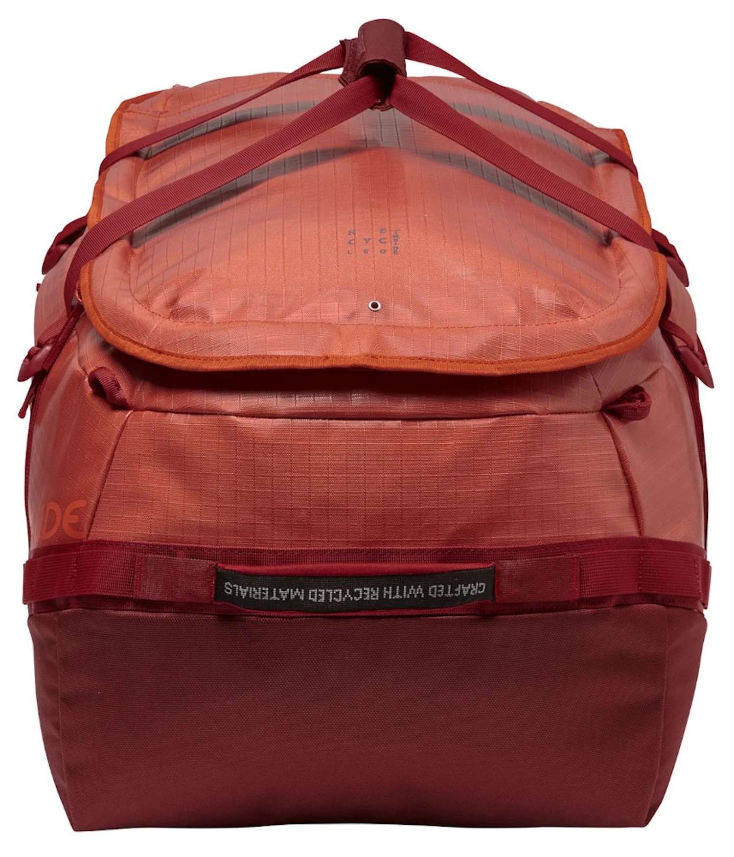 Die Duffle Bag dient als Transporttasche und Reisetasche gleichermaßen. Stattliche 65 Liter Volumen schlucken viel Gepäck für Camping, Sport und Reisen. Dank der verstaubaren, gepolsterten und vorgeformten Schulterträger lässt sich die CityDuffel auch über längere Distanzen komfortabel tragen. Die von innen und außen über einen Reißverschluss zugänglichen Seitenfächer verwahren Geldbeutel, Handy und andere Kleinutensilien stets griffbereit. Mittels der gepolsterten Griffe an beiden Seiten lässt sich die Tasche auch im schwer beladenen Zustand gut verladen. Seitliche Kompressionsriemen sorgen für mehr Flexibilität so kann eine Matte oder Jacke noch schnell außen angebracht werden oder auch umgekehrt lässt sich die ganze Tasche bei schwacher Beladung komprimieren. An die Daisy Chain (außenliegendes Schlaufenband) lassen sich Karabiner und somit weitere Gegenstände zusätzlich anbringen. Auch die Innenaufteilung ist für alle Einsätze vorbereitet so kannst du wahlweise Schmutzwäsche, Schuhe oder kleinere Gepäckstücke im unteren Fach abgetrennt vom restlichen Hauptfach verstauen oder aber das ganze Hauptfach als ein Fach nutzen dank des eingenähten, flexiblen Trennsacks. Dieser Trennsack dient zugleich der platzsparenden Aufbewahrung der Tasche. Der widerstandsfähige Materialmix der CityDuffel besteht aus einem recycelten Polyamid und einem Polyester, das aus recycelten PET-Flaschen hergestellt wurde. Die beschichtete Oberfläche ist schmutz- und wasserabweisend. Somit ist diese Duffle Bag ein durch und durch vielseitiger und umweltfreundlicher Reisebegleiter für viele Jahre. Das VAUDE Green Shape-Label steht für ein umweltfreundliches, funktionelles Produkt aus nachhaltigen Materialien.