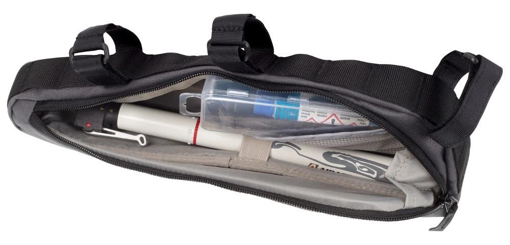 In der Rahmentasche finden Werkzeug, Minipumpe und ein Notfall-Energieriegel Platz. Das VAUDE Green Shape-Label steht für ein umweltfreundliches, funktionelles Produkt aus nachhaltigen Materialien.