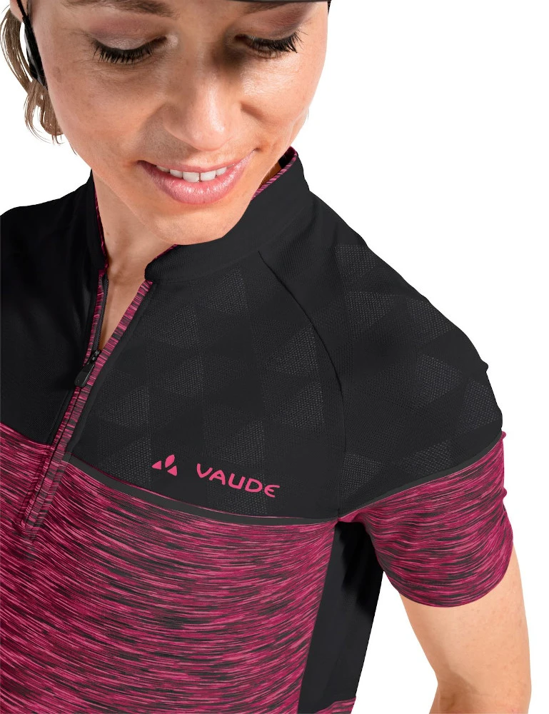 Es ist mit Stehkragen, kurzem Front-RV und kleiner Reißverschluss-Tasche ausgestattet und trägt sich angenehm leicht. Das nach dem strengen bluesign®-Umweltstandard zertifizierte Material bietet höchste Funktionalität. Sein abwechslungsreiches Design macht das Shirt zu einem echten Hingucker! Bei der Herstellung kommt zum Großteil recyceltes Polyester zum Einsatz – das Women’s Altissimo Shirt trägt sich mit einem guten ökologischen Gewissen. Das VAUDE Green Shape-Label steht für ein umweltfreundliches, funktionelles Produkt aus nachhaltigen Materialien.