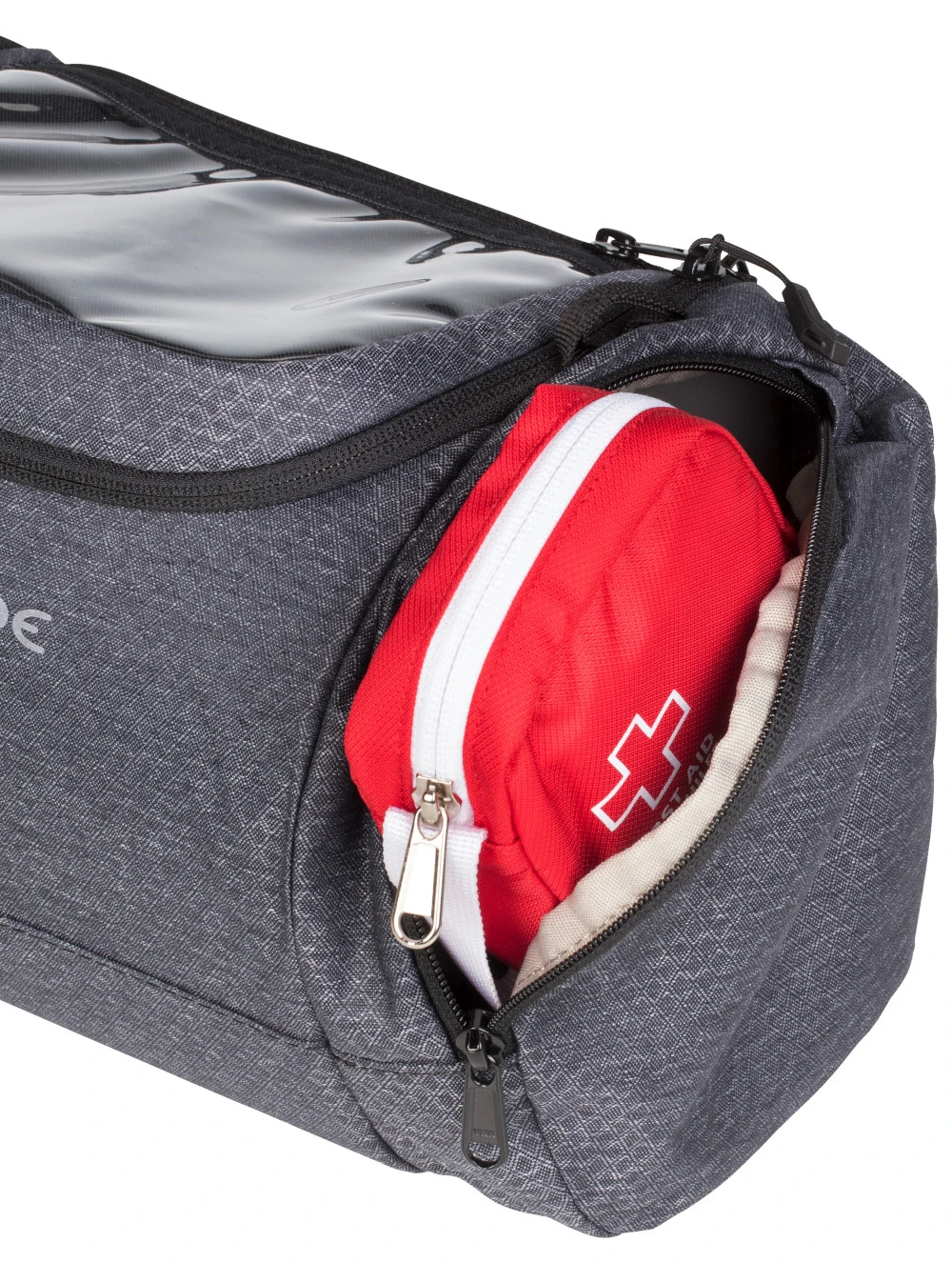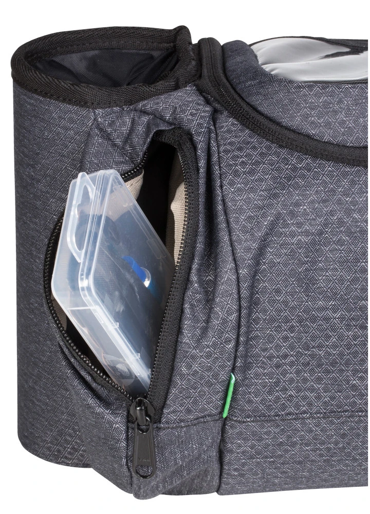 Sie lässt sich dank KlickFix mit wenigen Handgriffen am Lenker befestigen und bietet allem Platz, was auf der nächsten E-Bike-Tour dabei sein muss. Das große Hauptfach bietet viel Raum für Accessoires, der gepolsterte Trinkflaschenhalter ist problemlos während der Tour zugänglich. Besonders praktisch ist das Touchscreen-kompatible Smartphonefach, mit dem die Geräte während der Fahrt bedient werden können. In den außenliegenden Reißverschlusstaschen sind Wertgegenstände und andere Dinge, die man schnell zur Hand haben will, sicher untergebracht.