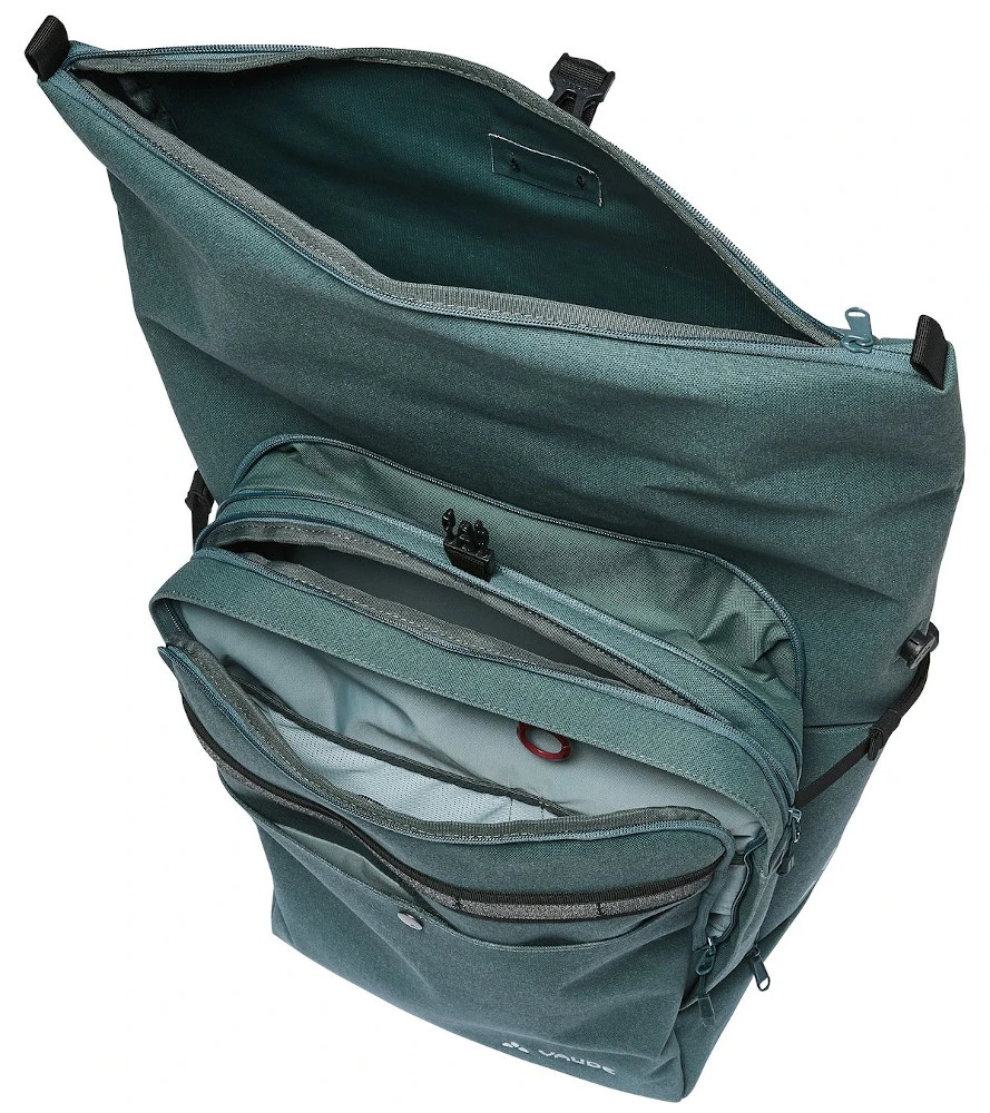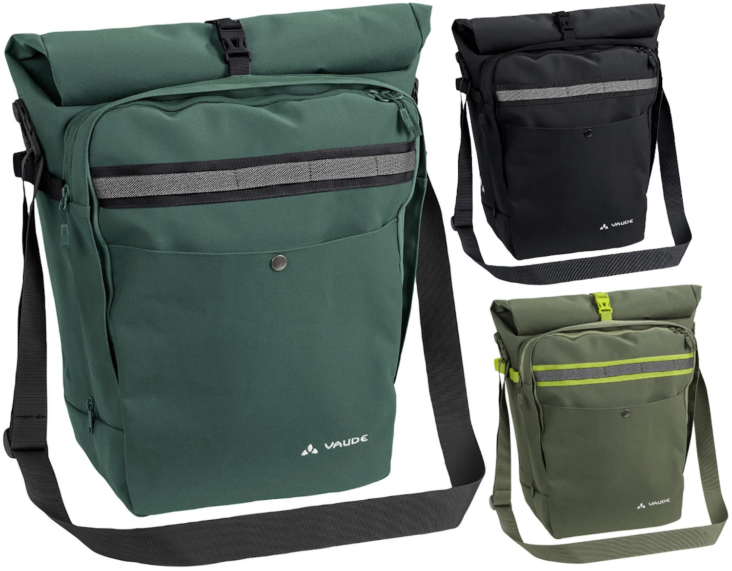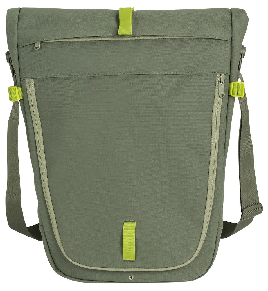 Für alle, die kein Auto brauchen, ist diese Tasche genau das Richtige. Die lässige und durchaus großzügige Biketasche für die Stadt ist wie für Dich gemacht, sofern du nach der Arbeit noch zum Sport oder Einkaufen radeln möchtest. Das große, einfach aufzurollende Hauptfach bietet genügend Stauraum für Wechselklamotten, Turnschuhe oder Sportsachen. Das zweite Hauptfach, welches durch einen extra Reißverschluss im Volumen vergrößert werden kann, bietet zusätzlichen Platz für Deine ausgedehnten Shoppingtouren nach der Arbeit. Die abnehmbaren Träger sorgen dafür, dass die Tasche – wenn sie mal nicht am Gepäckträger befestigt ist – auch als Umhängetasche verwenden kannst. Ein extra Laptopfach sorgt zusammen mit dem gut strukturierten Organiser auf der Vorderseite der Tasche für Ordnung. Reflektierende Elemente am Schlaufenband sorgen zudem für extra Sichtbarkeit, falls der Tag mal etwas länger dauern sollte und eine integrierte Regenhülle schützt Dein Gepäck vor Nässe. Dieses Produkt ist mit Eco Finish umweltfreundlich wasserabweisend ohne Fluorcarbone (PFC) hergestellt.