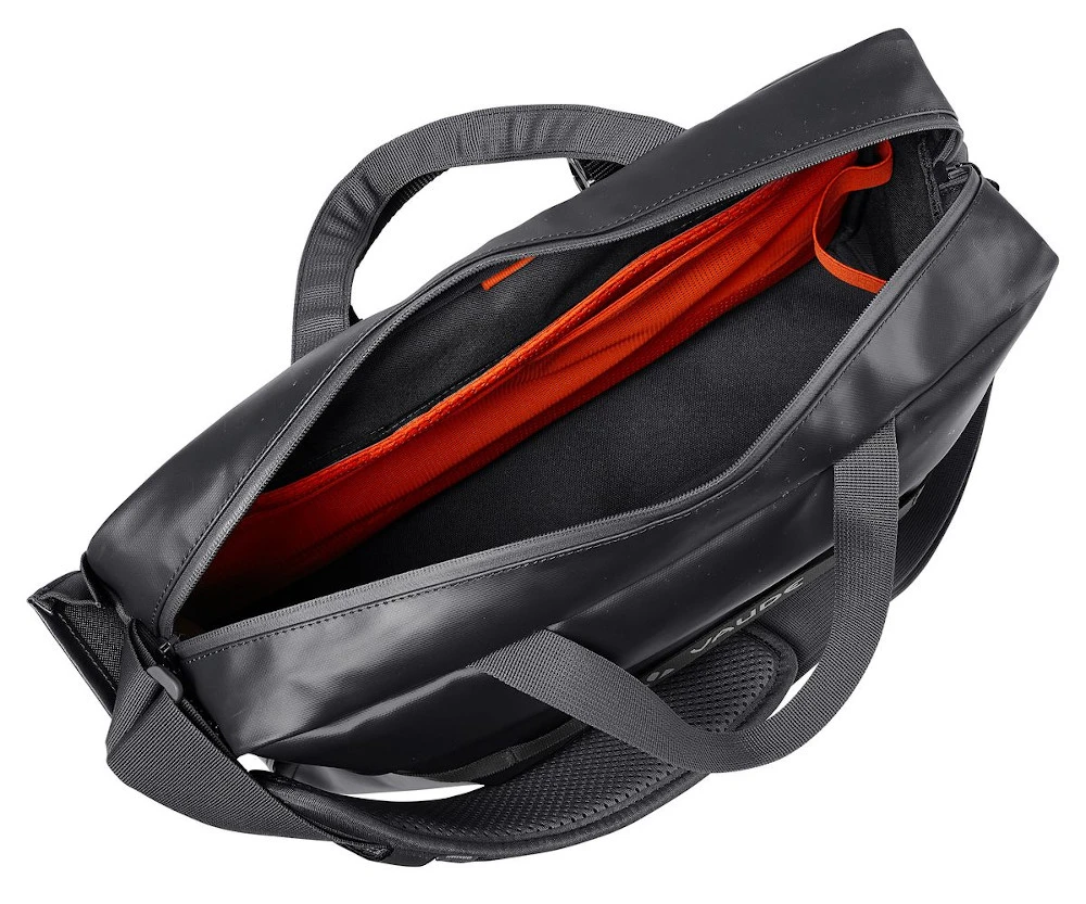 Diese wandelbare Bürotasche lässt sich mit einem Handgriff am Fahrrad-Gepäckträger mittels einer Plug-and-Ride-Schiene an- und abmontieren. Perfekt also für den Commuter Alltag und auch bequem zu tragen, wenn Mann oder Frau auch zu Fuß unterwegs ist. Hierfür wird die Schiene einfach nur in dem dafür vorgesehenen Seitenfach aufbewahrt. Auch die Fächeraufteilung der Mineo Commuter Briefcase 17 ist durchdacht. Handy und andere Kleinigkeiten verschwinden im hinteren Reißverschlussfach, im vorderen Fach können Zeitung, Block und Snack schnell verstaut werden und im großen Reißverschluss Hauptfach finden ein 15,6″ Laptop, Unterlagen und sogar ein ganzer Ordner locker Platz. Ein innenliegender Flaschenhalter hält das Getränk kippsicher an Ort und Stelle und weitere Ordnungshelfer wie Stifte- und Schlüsselhalter sorgen für Ordnung und schnelle Auffindbarkeit. Über die multifunktionelle und mit reflektierenden Elementen bedruckte Befestigungsschlaufen kann die Tasche weiter beladen oder auf einen Trolley aufgesteckt werden. Das bluesign®-zertifizierte, robuste Material ist PVC-frei, schmutzabweisend und trotzt den Widrigkeiten des Stadtalltags. Als Mitglied mit Leader Status bei der unabhängigen Organisation Fair Wear engagiert sich VAUDE für faire Arbeitsbedingungen und faire Löhne. Das VAUDE Green Shape-Label steht für ein umweltfreundliches, funktionelles Produkt aus nachhaltigen Materialien. Zudem ist dieses Produkt klimaneutral. Die Emissionen aus Materialien, Herstellungsprozess und Versand wurden ganzheitlich ermittelt und systematisch reduziert. Aktuell nicht vermeidbare Emissionen wurden vollständig über die unabhängige Non-Profit-Organisation „myclimate“ kompensiert.