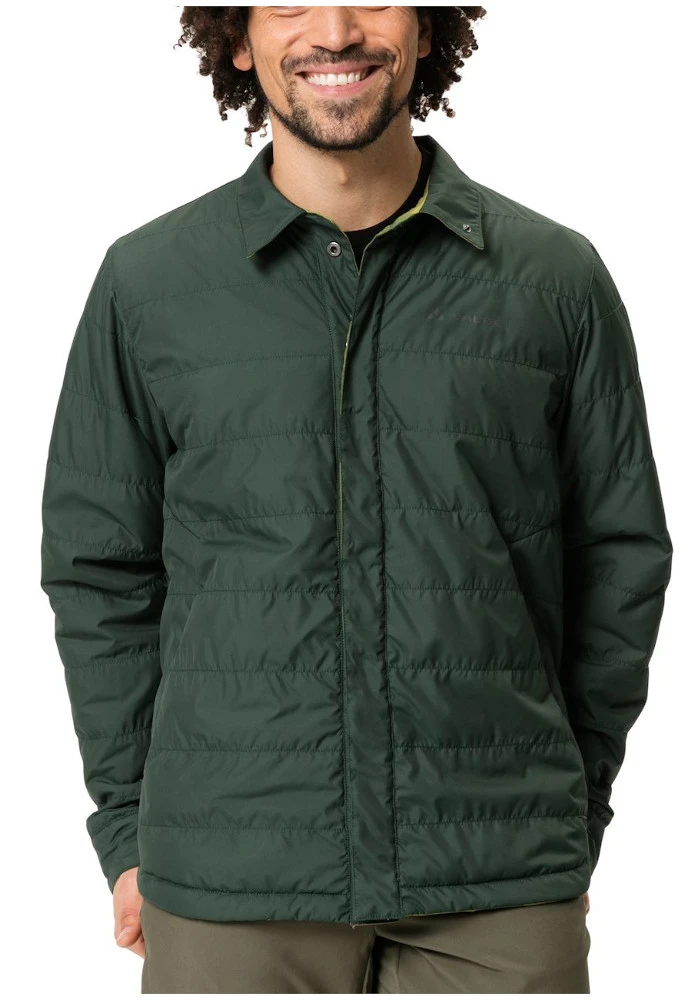 Jacke wie Hemd – das wendbare Herren Mineo Padded Shacket ist durch die leichte Wattierung und das weiche Flanellmaterial so warm, dass es als Jacke an milden Herbsttagen völlig ausreicht. Offen getragen ist dieser urbane Trendsetter ein modisches Wärmeplus in Uni und Alltag und wertet die Garderobe durch seine Wendemöglichkeit und seine unauffälligen, reflektierenden Elemente doppelt auf. Das überwiegend recycelte Material des Shackets für Herren ist pflegeleicht und schnelltrocknend. Die hemdtypisch aufgenähten Taschen verstauen wichtige Kleinigkeiten. Dank der handlichen Druckknöpfe ist das Hemd schnell auf- und zugemacht; selbst der Kragen kann bis obenhin geschlossen werden, wenn die Brise einmal kälter ausfällt. Als Mitglied mit Leader Status bei der unabhängigen Organisation Fair Wear engagiert sich VAUDE für faire Arbeitsbedingungen und faire Löhne. Das VAUDE Green Shape-Label steht für ein umweltfreundliches, funktionelles Produkt aus nachhaltigen Materialien. Zudem ist dieses Produkt klimaneutral: Die Emissionen aus Materialien, Herstellungsprozess und Versand wurden ganzheitlich ermittelt und systematisch reduziert. Aktuell nicht vermeidbare Emissionen wurden vollständig über die unabhängige Non-Profit-Organisation „myclimate“ kompensiert.