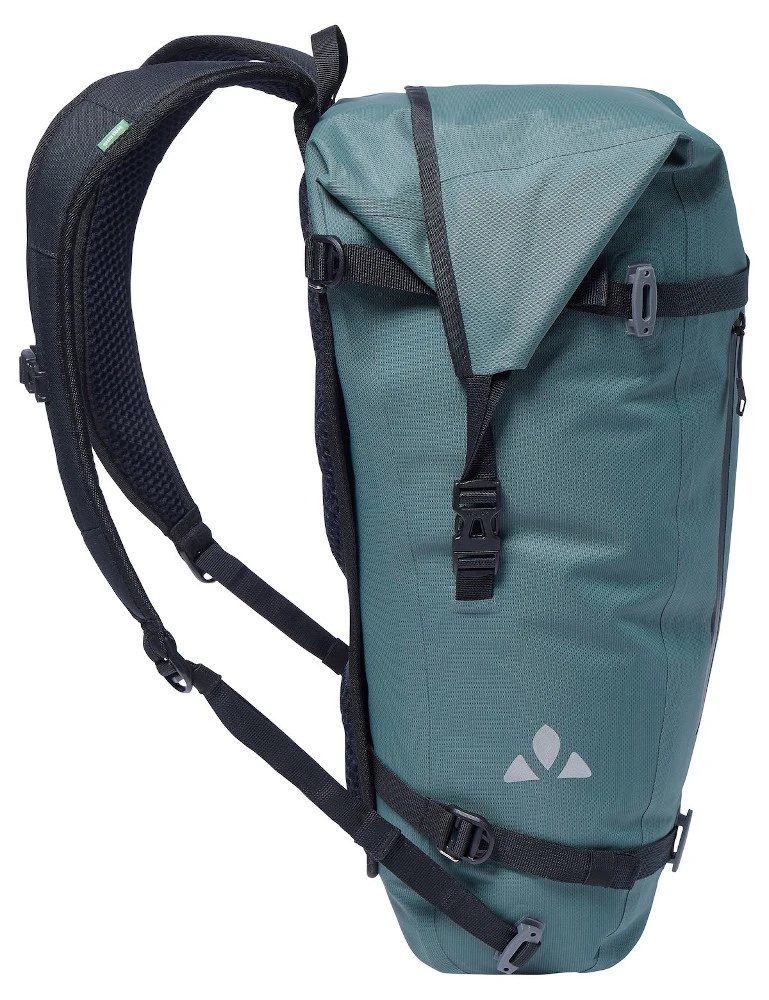 Der wasserdichte Rucksack in cleaner Optik ist ein echtes Multitalent für Stadt, Rad, Trail und Berg und das auch noch bei jedem Wetter! Komfortable Ergoshape-Schulterträger und strategisch platzierte Rückenpolster bieten auch ohne Hüftgurt einen guten Sitz selbst bei höherer Beladung oder kleinerem Körpermaß. Kompressionsriemen unten und oben ermöglichen eine genaue Fixierung des Inhaltes je nach Packvolumen. Der bewährte Wickelverschluss kann variabel seitlich nach unten abgespannt oder oben zusammengeklippt werden und bietet einen schnellen Zugriff aufs Hauptfach. Auf der rückwärtigen Innenseite findet sich ein gepolstertes Fach für Laptops bis 13,3″ sowie je ein Reißverschluss und ein Einsteckfach zur Sicherung von Kleinutensilien. Eine wasserdicht eingeschweißte Einschubtasche auf der Front nimmt Riegel, Karte oder GPS auf. Zusätzlich kann über die 4 eingeschweißten Mehrzweckaufnahmen eine im Lieferumfang enthaltene Kordel beliebig fixiert werden, um darunter zusätzliche Ausrüstung wie eine Helm, eine Jacke oder auch nasse Kleidung zu verstauen. Reflektierende Logo-Drucke auf Front und Seiten geben ein Mehr an Sichtbarkeit im Dunkeln. Das extrem abriebfeste, bluesign®-zertifizierte Hauptmaterial besteht zu 68 % aus recyceltem Econyl. Der Proof 22 wird umweltfreundlich am Firmenstandort in Deutschland in Hochfrequenztechnik wasserdicht verschweißt.