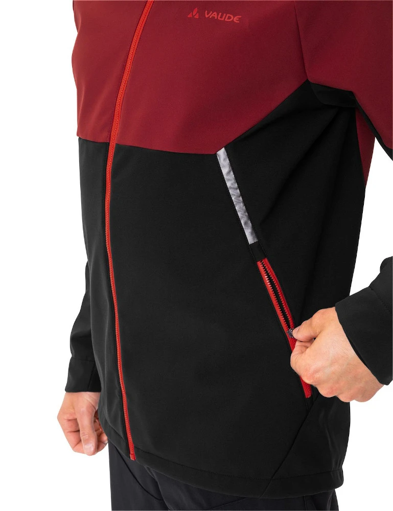 Die Herren Qimsa Softshell Jacket ist eine äußerst vielseitg einsetzbare Softshelljacke, die zwar primär für den Einsatz auf dem Fahrrad konstruiert wurde, sich aber auch als Outdoorjacke bestens eignet. Dank des wind- und wasserdichten Materials hält sie eisige Böen und leichten Regen ab und schützt den Körper vor Auskühlung. Der speziell auf die Anforderungen beim Radfahren optimierte Schnitt, die einstellbare Kapuze und reflektierende Elemente machen diese Männer Bikejacke zu einem gerne verwendeten Kleidungsstück in der Übergangszeit. In Kombination mit einem Base- und Midlayer eignet sich diese Fahrradjacke auch im Hochwinter zum Radfahren. Das VAUDE Green Shape-Label steht für ein umweltfreundliches, funktionelles Produkt aus nachhaltigen und bluesign® zertifizierten Materialien.