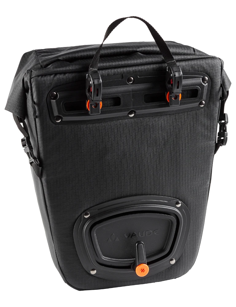 Die Road Master Roll-It Waxed ist eine praktische, unkomplizierte Fahrradtasche für Freizeit- und Wochenendausflüge. Die Radtasche wird aus einem robusten Material hergestellt, das mit einer wasserabweisenden Beschichtung versehen ist und so problemlos auch längere Regenfälle wegsteckt. In der geräumigen Reißverschluss-Außentasche haben Dokumente und Karten problemlos Platz. Durch das benutzungsfreundliche, abschließbare QMR 2.0 Befestigungssystem wird die Road Master Roll-It Waxed schnell und unkompliziert an den Gepäckträger gehängt. Das VAUDE Green Shape-Label steht für ein umweltfreundliches, funktionelles Produkt aus nachhaltigen Materialien