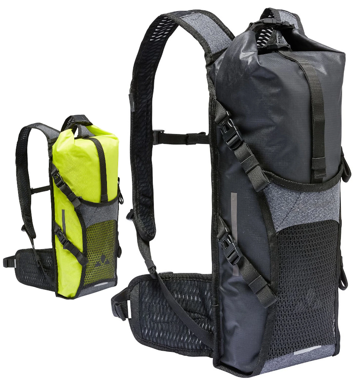 Er eignet sich genau so fürs Bikepacking wie fürs Graveln oder ist ein leichter Begleiter im urbanen Alltag. Das superkleine Packmaß des Trailpack macht ihn perfekt für die Radreise, wo er fürs Sightseeing aus dem Reisegepäck geholt und danach wieder platzsparend verstaut wird. Auch die nützlichen Details können sich sehen lassen. Der Packsack mit 8 l Volumen ist wasserdicht verschweißit und wird gerollt verschlossen. Er ist mit dem Rücken unten und seitlich verbunden, so dass im Zwischenraum von oben weiteres Gepäck oder eine Trinkblase mit 2 l Volumen verstaut werden kann. Hinter dem Frontflap mit 2 Kompressionsriemen finden ein Helm, eine nasse Jacke oder andere Ausrüstung Platz. Wertgegenstände können in einer kleinen Reißverschlusstasche am Rückenteil sicher verwahrt werden. Für Sicherheit in der Dunkelheit sorgen auf der Front und seitlich am Packsack platzierte Reflexdrucke. Sowohl der wasserdichte Packsack als auch der Front-Flap bestehen zu 100 % aus recycelten Materialien.