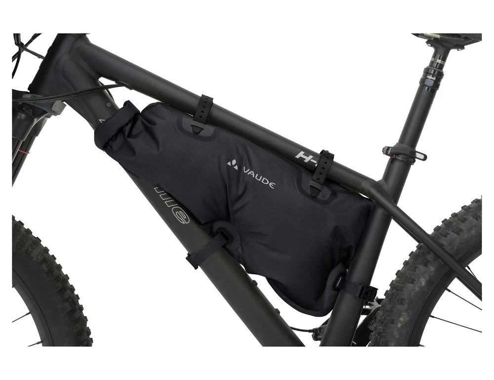 Du liebst es, auf Deinen Touren jeden Tag an einem anderen Ort aufzuwachen!? Mit dem Wissen, dass auf Dich und Deine Freunde ein Tag voller Bikespaß zukommt? Mit der wasserdicht verschweißten Rahmentasche aus PVC-freiem Planen-Material wirst Du Deinen Schalfplatz bald kennenlernen. Der einfach zugängliche Packsack mit 8 Liter Volumen eignet sich durch seinen niedrigen Schwerpunkt hervorragend für schwere Gepäckstücke wie Werkzeug, Campingkocher oder Proviant. Praktisches Feature: Die unteren 2 Befestigungsriemen können entfernt werden, wodurch der Packsack in der Länge verstellbar ist und auch an Bikes mit Hinterradfederung angebracht werden kann. Weitere Befestigungsriemen werden durch haftstarke, gummierte Bänder am Oberrohr befestigt. Dieses Produkt ist mit Eco Finish umweltfreundlich wasserabweisend ohne Fluorcarbone (PFC) hergestellt. Das VAUDE Green Shape-Label steht für ein umweltfreundliches, funktionelles Produkt aus nachhaltigen Materialien.